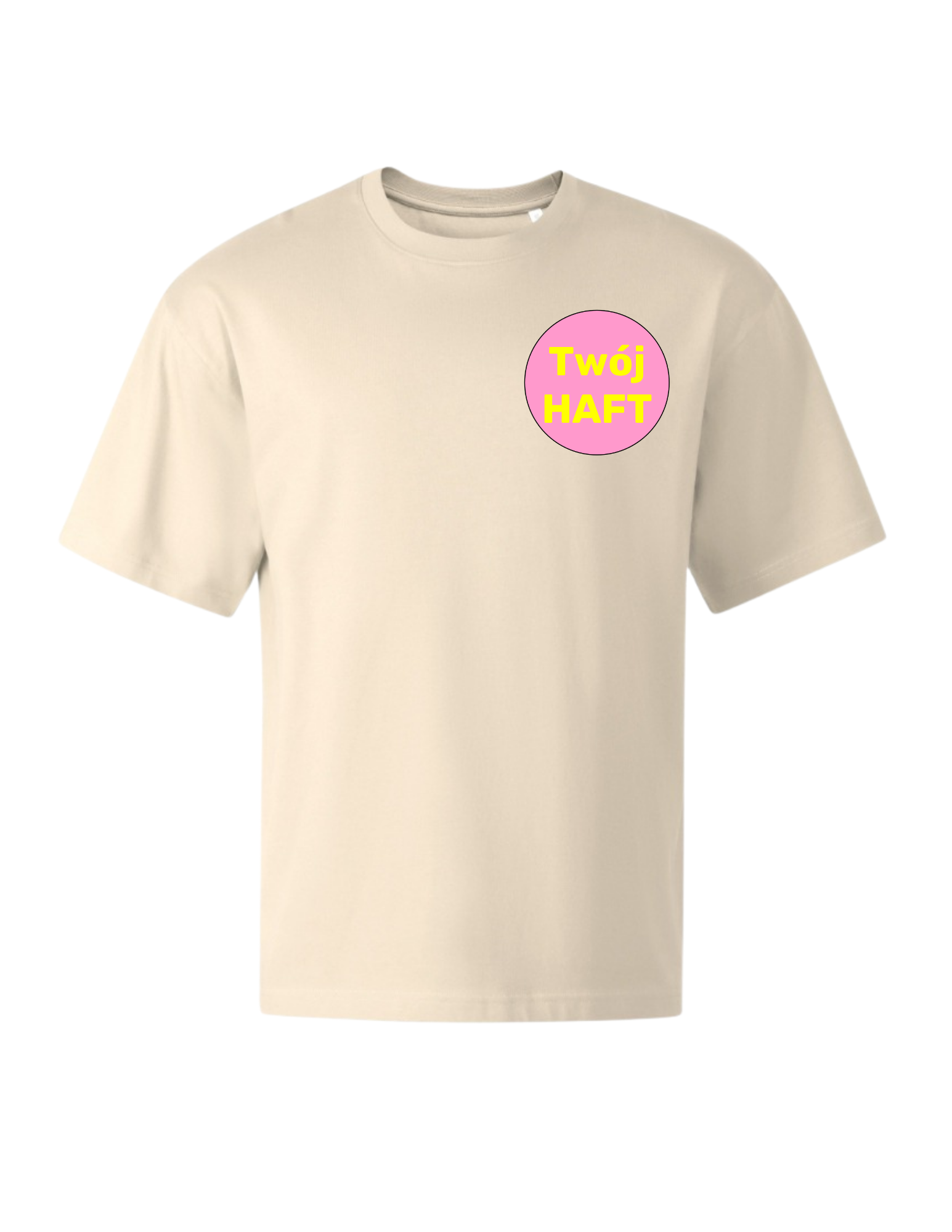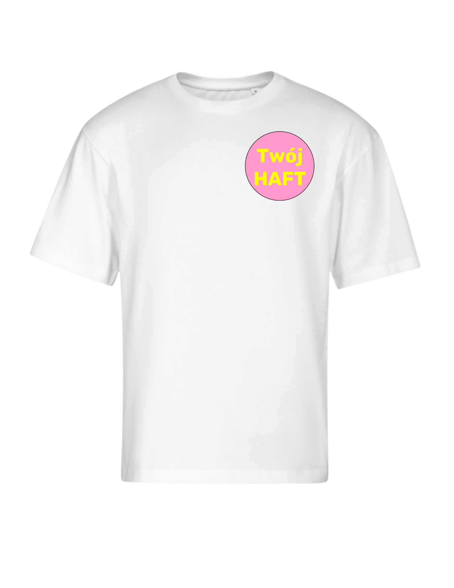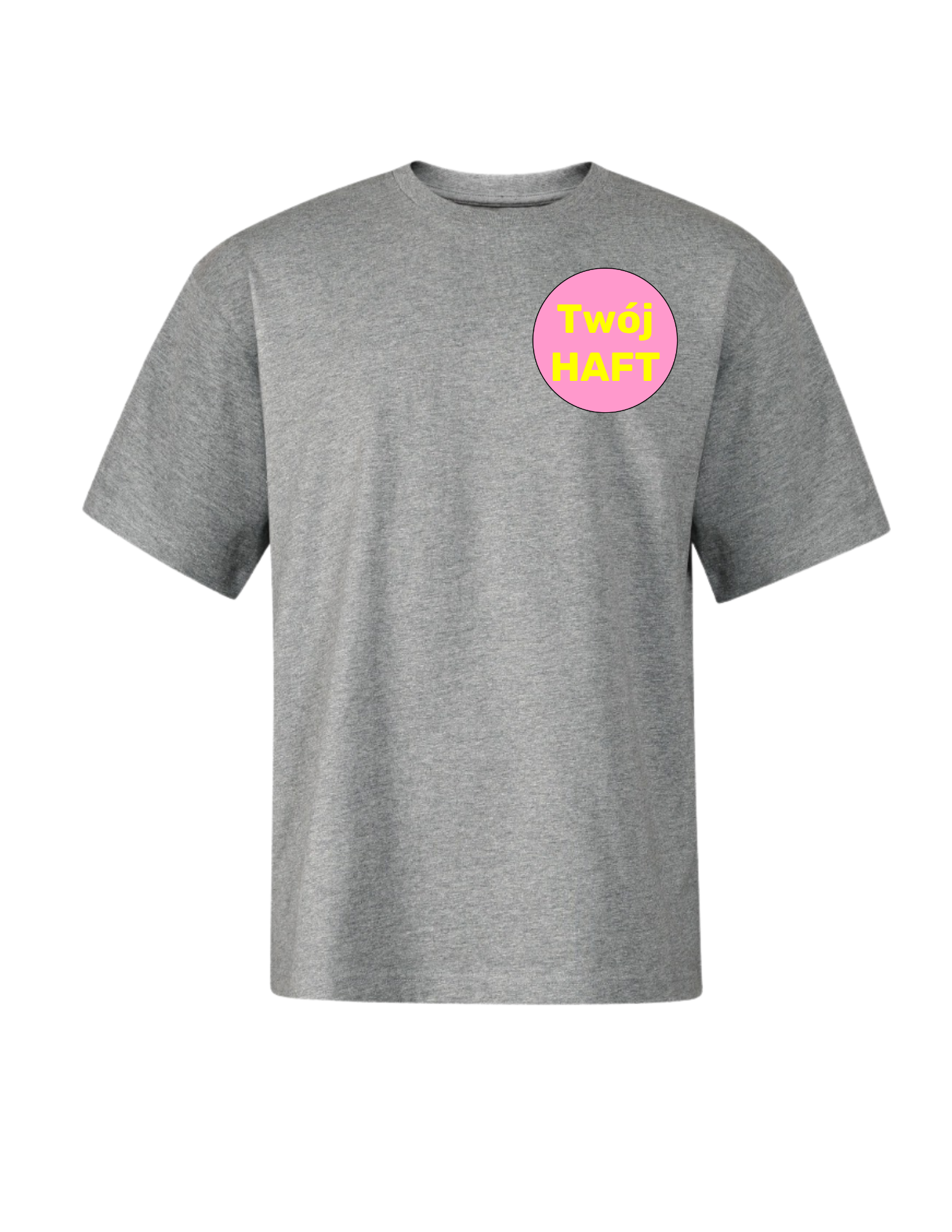 Logo umieszczone z przodu koszulki (na prawej piersi) wykonywane jest haftem komputerowym w rozmiarze dopasowanym do projektu. Szerokość wynosi 8–9 cm, a wysokość zawsze zachowuje proporcje oryginalnego logo, dzięki czemu całość wygląda estetycznie i profesjonalnie.